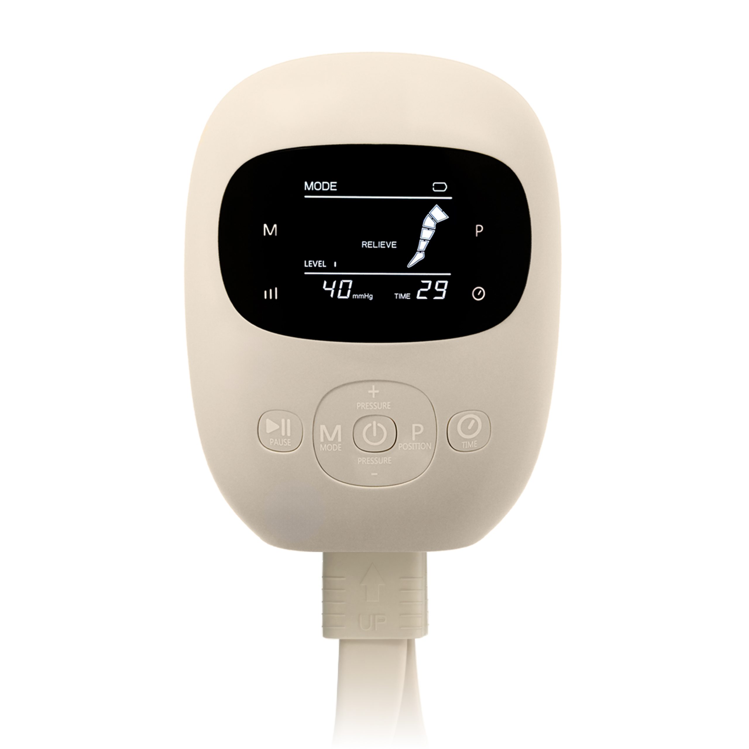 - Regulierbarer, zyklischer Druck umfasst Füße, Waden und Oberschenkel – fördert die Durchblutung und hilft, das Gefühl schwerer Beine zu reduzieren