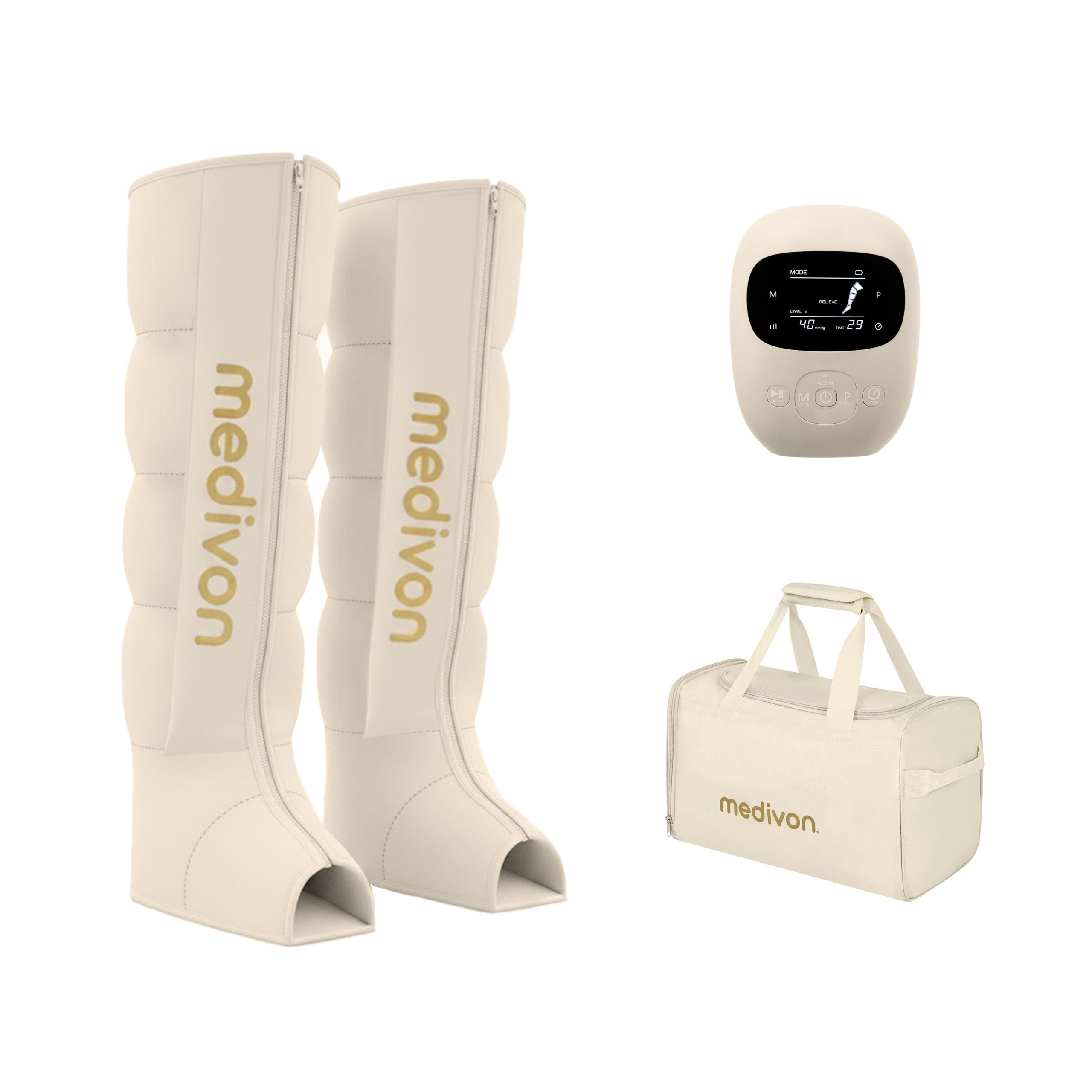 Medivon Lumina ist ein modernes Kompressionsmassagegerät für die Beine, das effektive Luftdrucktechnologie mit komfortabler Anwendung zu Hause verbindet.