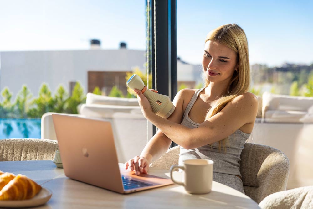 USB-C Ladung und ein integrierter 1800 mAh Akku ermöglichen bis zu 120 Minuten kabellosen Betrieb. Du musst kein freies Steckdosenfeld suchen und bist nicht an einen Ort gebunden – die Massage kann dich auf dem Sofa, im Schlafzimmer oder sogar unterwegs begleiten. Medivon Halley 2 arbeitet leise, sodass du entspannen kannst, ohne andere zu stören.